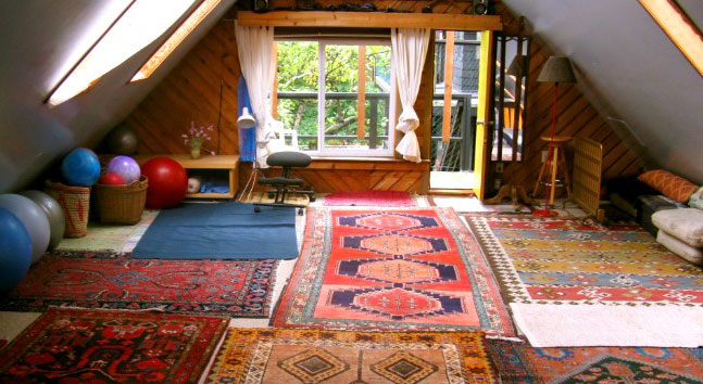 طراحی اتاق مدیتیشن به سبک ایرانی با قالیچه های رنگی