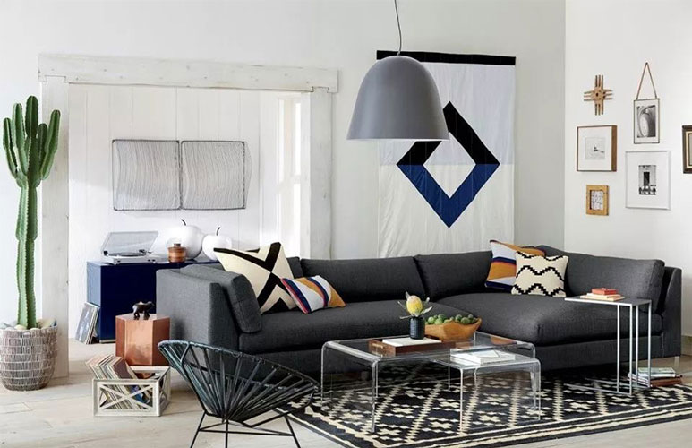 مبل ال را اگر می خواهید برای اتاق نشیمن استفاده کنید برای شما چند توصیه داریم. در ابتدا به شما پیشنهاد می کنیم از مبلی استفاده کنید که میزهای پذیرایی یا میز عسلی همراه داشته باشند؛ یعنی مبل و میز به صورت ترکیبی در پرسه تولید دنبال شده باشد. این امر سبب می شود از به هم ریختگی و آشفتگی در فضای داخلی اتاق نشیمن شما جلوگیری شود. حال اگر می خواهید از صندلی های بیشتری برای نشستن مهمان های خود استفاده کنید و انتخاب شما مبل های ال سرتا سری بدون میز است از چه میزی باید استفاده شود؟ این سبک از مبل ها را بهتر است با میز های پارچه ای ست کنید تا در صورت برخورد به میز به شما و میز شما آسیبی وارد نشود. همچنین می توانید از میزهای عسلی پارچه ای نیز برای زیبا تر شدن دکوراسیون خود بهره بگیرید و یک چیدمان متفاوت با مبل های ال را تجربه کنید.