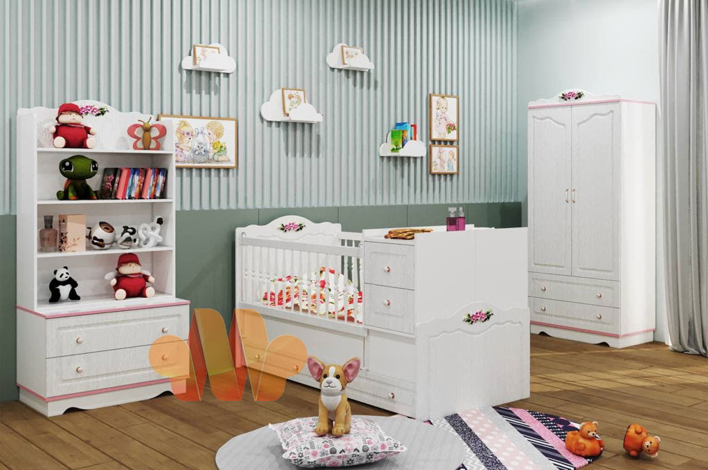 سرویس خواب کودک سپیده ساده وزیبا ساخته شده از ام دی اف و ملامین این ست نوزادی شامل تخت دومنظوره (نوزاد نوجوان)و کمد و ویترین دراور بوده در تخت های دو منظوره شما میتوانید با برداشتن باکس تخت آنرا به تخت نوجوان تبدیل کنید تمامی اتصالات در این محصول الیت می باشد .