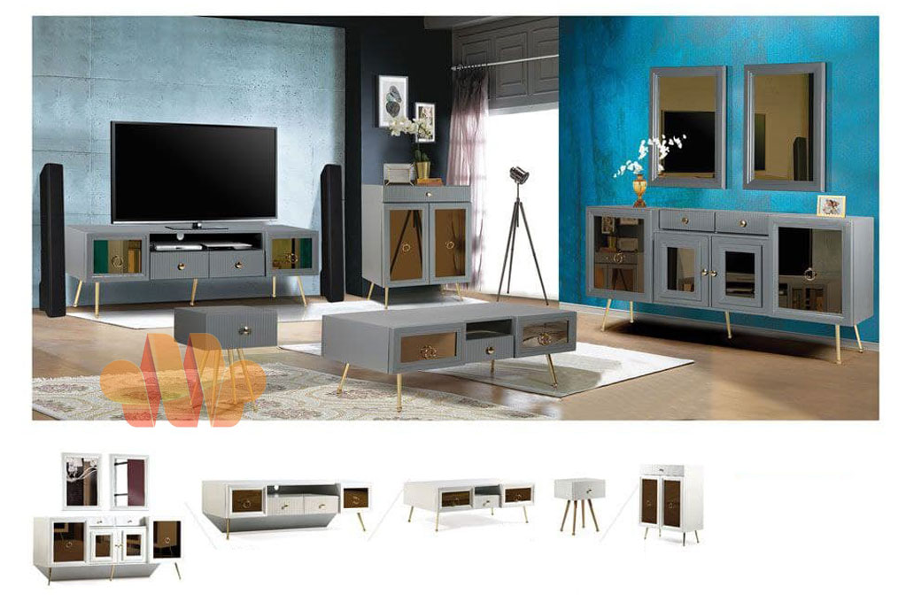 آینه کنسول کد 535 از ام دی اف رنگ شده با پایه هایی فلزی و درب های آینه برنز ساخته شده است این محصول دارای ست میزتلویزیون و جلومبلی نیز میباشد شما میتوانید کد محصول را در قسمت جستجو وارد کرده و قیمت سایرآیتم هارا مشاهده کنید