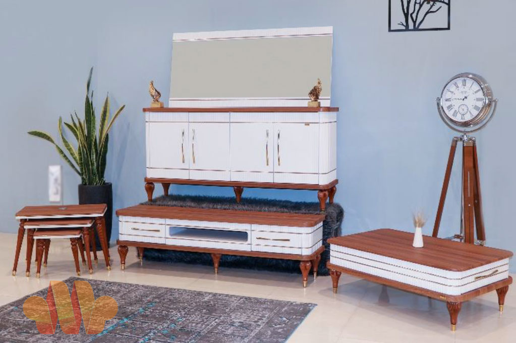با خرید محصول فوق یک کنسول چهار درب با قابلیت جایگذاری وسایل بسیار زیاد برای شما فراهم می شود. آینه بزرگ این کار نه تنها کارایی و زیبایی لازم را در محیط فراهم کرده که سبب شده است انرژی بیشتری در منزل شما منتشر شود. آینه و میز کنسول فوق از جنس ام دی اف با روکش وکیوم است که خود طول عمر بالای این محصول را فراهم ساخته است.