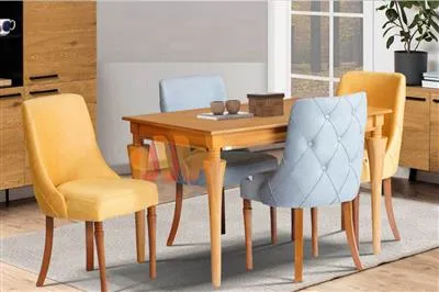 طراحی مدل مارال به گونه ای می باشد که با همه سلیقه ها سازگار است. پشت صندلی ها به سبک چستر با دکمه تزیین شده که در عین سادگی زیبایی مدل را دو چندان کرده. پایه های میز نیز توجه مشتریان را به خود جلب میکند. این سبک مدرن نئو کلاسیک را هم برای پذیرایی برای ست کردن با مبل چستر و هم برای آشپزخانه به مشتریان عزیز پیشنهاد می کنیم. ترکیب رنگ زرد با طوسی بیشترین فروش در این ست را دارد. این میز غذا خوری چوبی به صورت 4 نفره - 6 نفره و 8 نفره تولید می شود.
