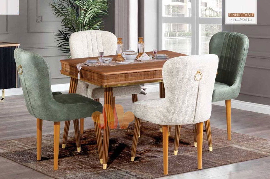 میز ناهار خوری پرنس دارای صفحه ای از جنس ام دی اف وکیوم شده و پایه هایی چوبی بوده این محصول دارای ست جلومبلی و میزتلویزیون نیز می باشد، که از طریق سایت میتوانید سفارش دهید قیمت اعلام شده برای میز ناهار خوری 4 نفره با پارچه ملیتا می باشد .شما می توانید سبد خرید و جنس و رنگ پارچه را تغییر دهید.