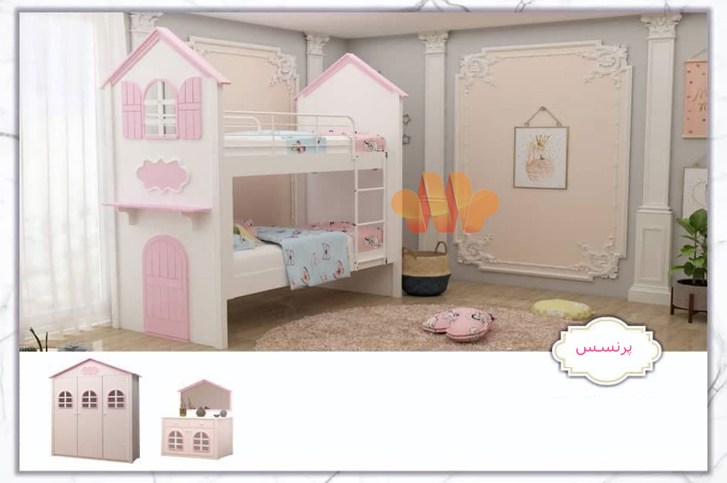 اتاق خواب با تخت دو طبقه دخترانه پرنسس قطعا شیک تر خواهد شد. این مدل با دو رنگ سفید و صورتی رنگی که دارد، اتاق خوابب رویایی را برای فرزندتان می سازد. ضمن اینکه طراحی کلبه شکلی که این تخت دارد برای بچه های کم سن و سال زیبا و قشنگ به نظر میرسد و حتی استراحت را بر روی تخت را به شکل یک بازی می بینند. این محصول از ام دی اف با نردبان و محافظ فلزی ساخته شده است و قیمت اعلام شده تنها برای تخت می باشد شما میتوانید کمد و میزآرایش را به سبد خرید اضافه کنید.