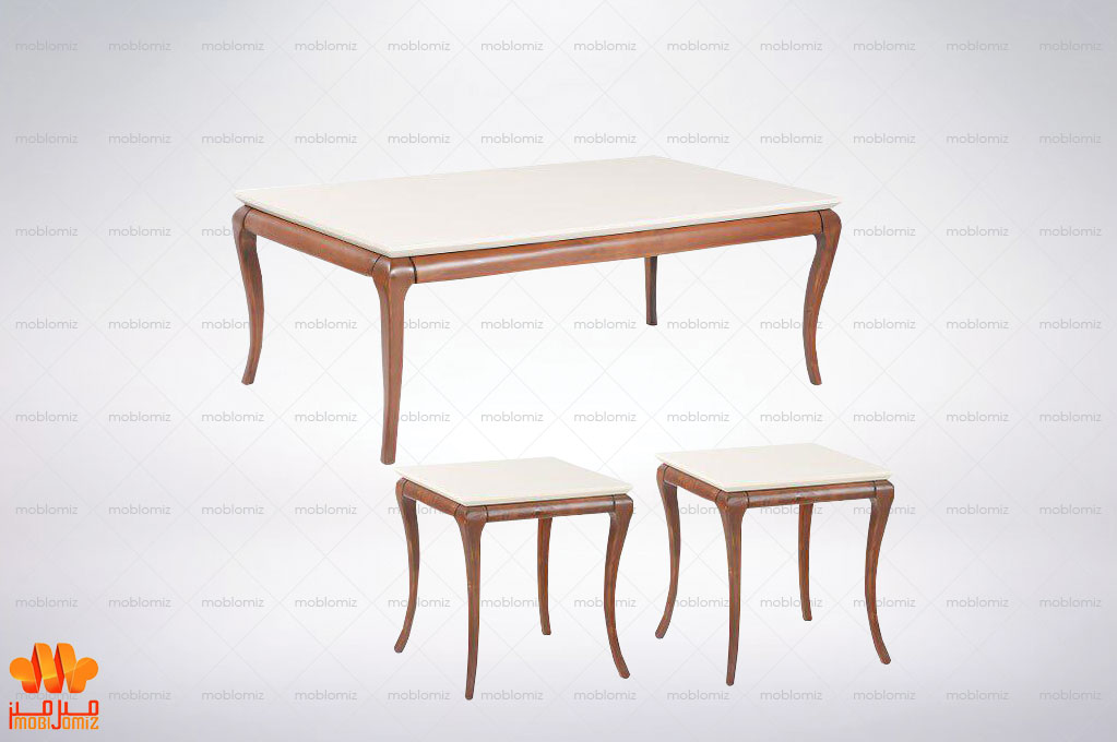 میز جلو مبلی و عسلی کد 410 از جنس چوب راش و دارای دو عدد عسلی میباشد