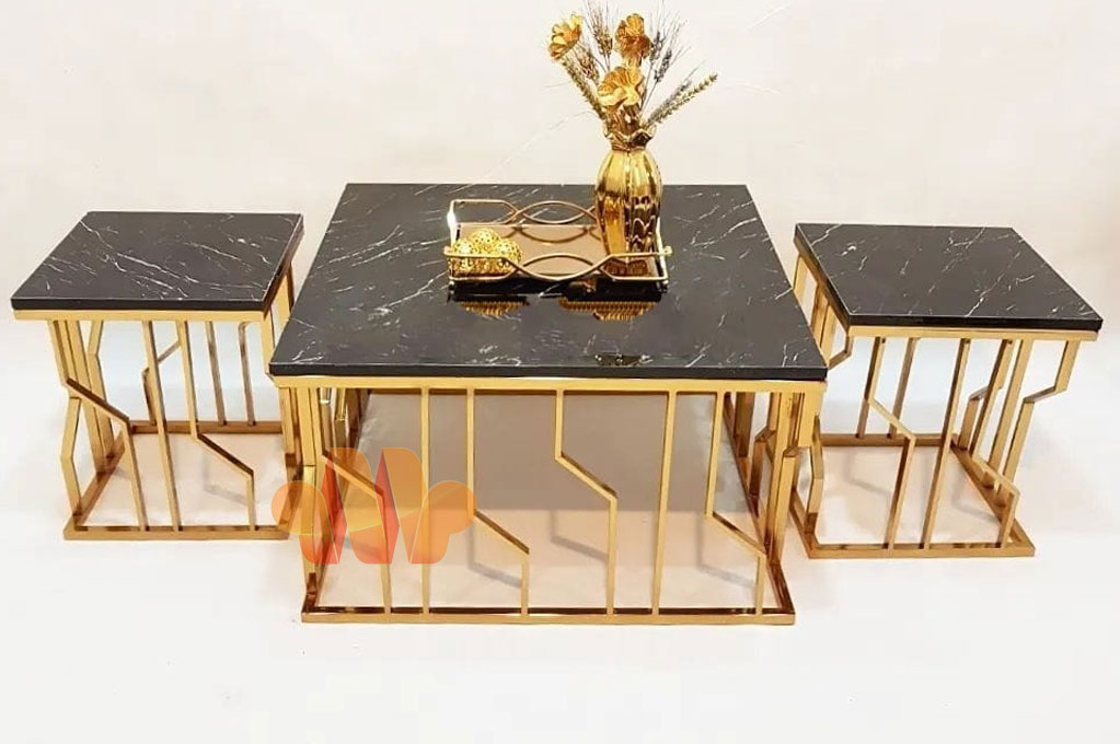 اگر بخواهیم یکی دیگر از محصولات ترند سال جدید را معرفی کنیم. بدون شک پیشنهاد ما به شما میز جلو مبلی فلزی مربع شکل با طرح سنگ با کد 724 می باشد. طراحی مربعی شکل این میز پذیرایی و میز عسلی جدید می توانیم اشاره داشته باشیم. از آنجایی که بسیاری از افراد طرفدار دکوراسیون مدرن و خطی تمایل به استفاده از این سبک کار ها دارند. بسیار با این قبیل محیط ها سازگار است. در قدم بعد باید به پایه های طلایی فلزی این مدل جلوی مبلی اشاره داشته باشیم که با تم رنگی نقره ای نیز برای شما قابل سفارشی سازی شدن است. این میز جلو مبلی شیک و پرفروش با هر سبک دکوراسیونی مخصوصاً با دکوراسیون مدرن و سلطنتی سازگار است. در آخر باید بگویم با خرید این محصول یک میز پذیرایی و دو میز عسلی در اختیار شما قرار داده می شود.