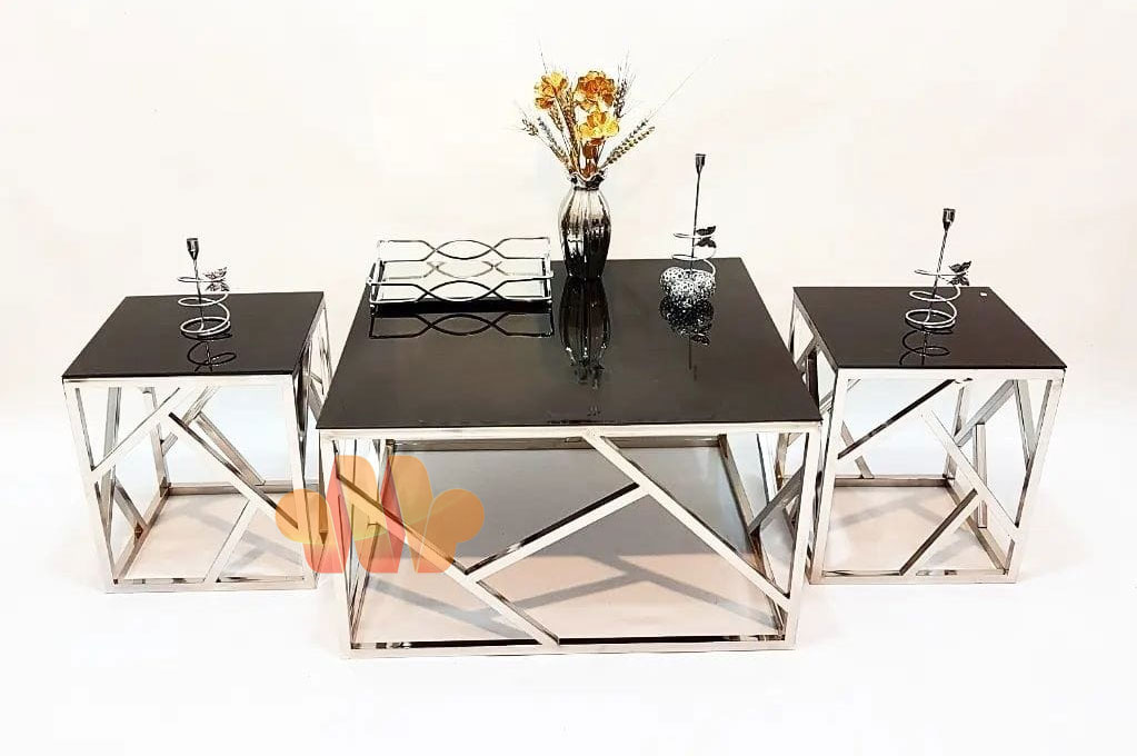 مدل جلو مبلی شیک و خاص پایه فلزی با صفحه ام دی اف مشکی به همراه دو میز عسلی که می توانید این مدل را با صفحه طرح سنگ و پایه طلایی نیز سفارش دهید سبک و نوع طراحی این مدل باعث زیباتر شدن منزل شما خواهد شد