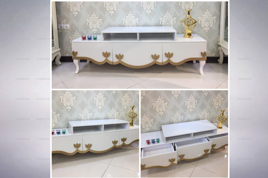 میز تلویزیون ریگا ام دی اف با روکش هایگلاس با طرحی کلاسیک و زیبا تمام اتصلات میز ترک-رنگ پلی استری و کشوها مگنتی می باشد این میز در دو سایز 160 و 180 و در چهار کد رنگی قابل سفارش است