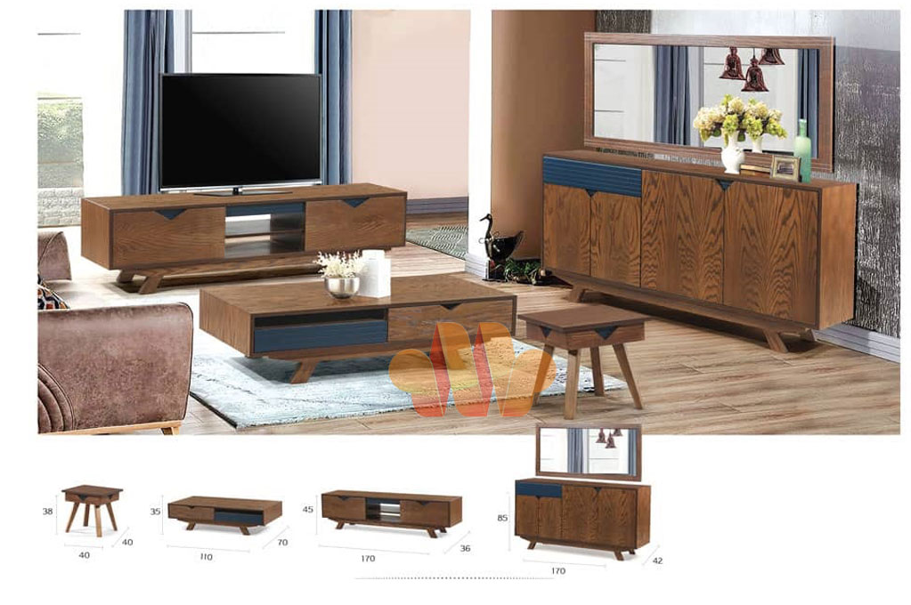 میزتلویزیون زمرد از ام دی اف با روکش چوب بلوط ساخته شده است این محصول دارای دو کشو و دو جای رسیور میباشد و در طول 170 قابل سفارش میباشد ست جلومبلی و میزکنسول این میز را میتوانید از طریق سایت سفارش دهید.