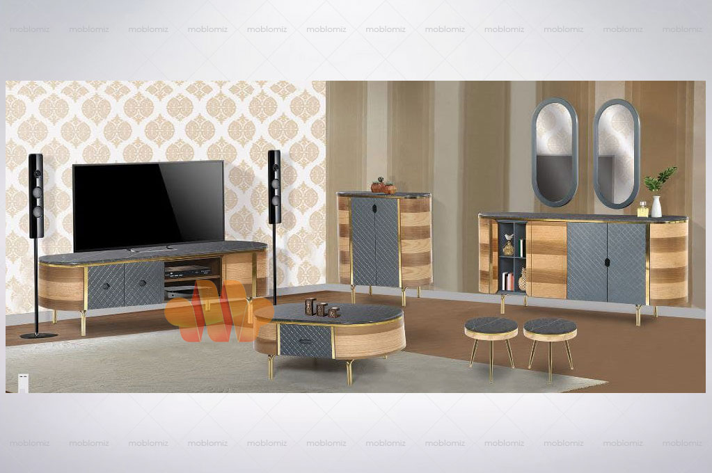 میزتلویزیون کد 046 محصولی بسیار با کیفیت بوده و از بهترین متریال در ساخت آن استفاده شده این میز از ام رد اف با روکش چوب ساخته شده و صفحه میز MDF وکیوم طرح سنگی میباشد شما میتوانید ست میزکنسول و جلومبلی این محصول را نیز از طریق سایت سفارش دهید
