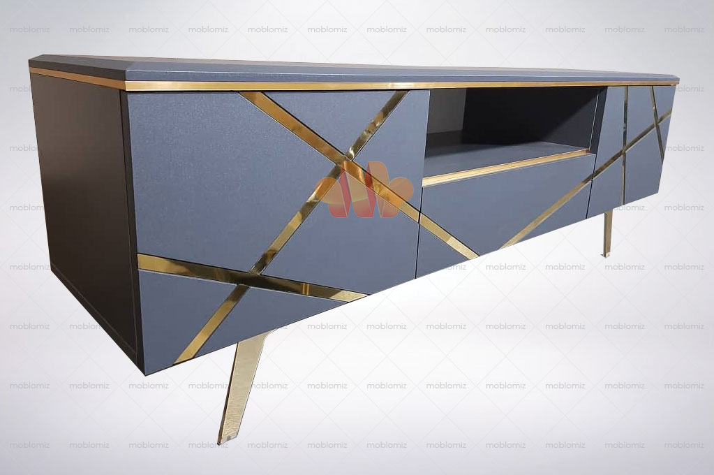 میز تلویزیون مدرن ماکسی از مدل های بسیار زیبا که می توانید برای چیدمان مدرن از آن استفاده کنید این زیر تلویزیونی فضای خوبی در اخیار شما قرار میدهد تا وسایل خود را درون کشو و کمد ها قرار دهید نوارهای طلایی و پایه های فلزی زیبایی کار را دو چندان کرده است این میز تلوزیون در دو رنگ سفید و طوسی قابل سفارش است در زمان ثبت سفارش حتما گزینه رنگ را انتخاب کنید این میز با توجه به قیمت ارزان بسیار پر طرفدار است