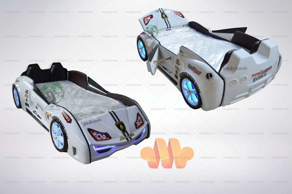 تخت ماشینی لامبورگینی جدیدترین محصول پادچوب ، با قابلیت باز شدن درب های کناری تخت و کاپوت جلو همزمان ، درب ها مجهز به نگه دارنده مگنتی (آهنربایی) ، دارای طلق های پلکسی گلس لبه گرد به عنوان پنجره ، دیلایت جلو نئونی ، روشن شدن چراغ های تخت با ریموت کنترل با حالت های نوری متنوع (ثابت . چشمک زن با حالت های گوناگون)