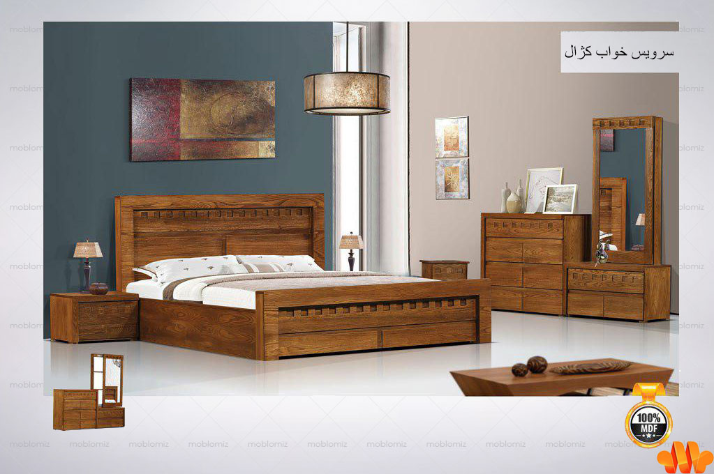 سرویس خواب کژال ساده و زیبا شامل تخت( در ابعاد 120 140 160 و180 ) و میزآرایش و پاتختی بوده و از ام دی اف با روکش چوب ساخته شده است