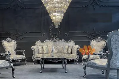 مبلمان کلاسیک مدل شاینا، تلفیقی باشکوه از هنر منبتکاری، طراحی اصیل و شکوه اشرافیست که با رنگ مشکی براق، جلوهای خاص و متفاوت به فضای داخلی میبخشد. این مدل برای افرادی طراحی شده که بهدنبال سبکی فاخر، جسور و خاص در دکوراسیون منزل خود هستند.