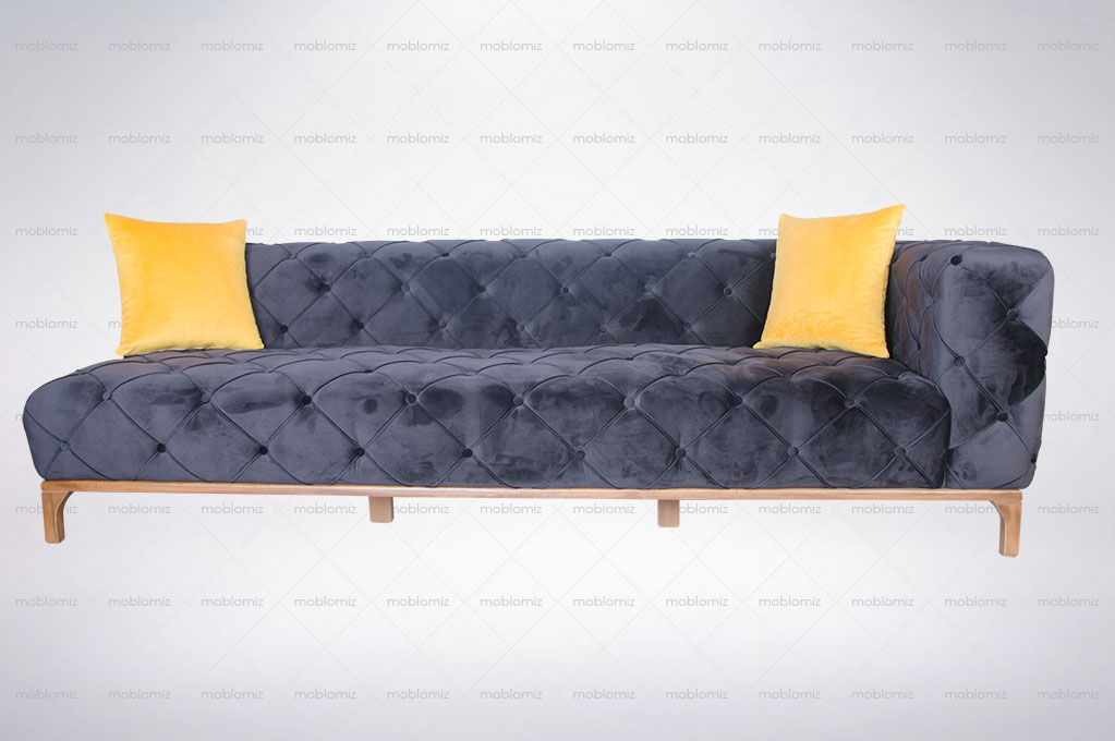 در نمای این مبل چوب راش استفاده شده و برای نشیمن از اسفنج سی کیلویی