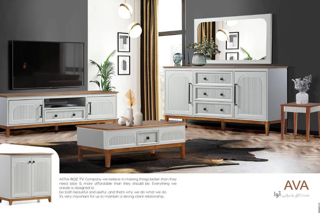ست سالن پذیرایی آوا یکی از محصولات خاص و چشمنواز در دکوراسیون داخلی است که با طراحی مدرن و ترکیب رنگ سفید و قهوهای، جلوهای بینظیر به فضای پذیرایی میبخشد. این ست شامل میز تلویزیون، میز جلومبلی، عسلی، آینه کنسول است ، که همگی با ظرافت بالا از جنس MDF مقاوم ساخته شدهاند. خطوط برجستهی عمودی روی دربها و کشوها، حس نظم و انسجام را به طراحی القا کرده و دستگیرههای فلزی تیره، تضاد زیبایی ایجاد کردهاند.صفحه رویی قهوهایرنگ، گرما و بافتی طبیعی را به فضا اضافه میکند و پایههای چوبی خوشفرم با ارتفاع مناسب، علاوه بر زیبایی، امکان نظافت راحتتر را فراهم میسازد. این ست برای خانههایی با سبک مدرن، کلاسیک یا حتی مینیمال انتخابی ایدهآل است؛ چرا که رنگ خنثی آن بهراحتی با سایر مبلمان و دکورها هماهنگ میشود.اگر بهدنبال یک سرویس کامل و هماهنگ برای سالن پذیرایی هستید که علاوه بر ظاهر شیک، دوام بالایی نیز داشته باشد، ست آوا با متریال مرغوب MDF و طراحی مهندسیشده، یک انتخاب هوشمندانه و زیبا برای خانه شماست.