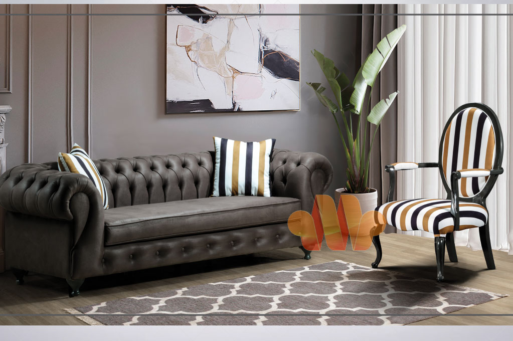 مبل چستر لوگان با لمسه ای مرتب و خاص ،چوب نما سوپر راش گرجستان ، چوب کلاف داخلی روس سوپر اسفنجها ۳۵ کیلویی ویژه با ترکیب هشت نفره (1+1+3+3). این مدل مشابه مدل های مبل ترکیه می باشد این مبلمان چستر شیک را شما می توانید با هر رنگ و پارچه ای سفارش دهید البته بهترین رنگ برای مبل چستر طوسی است