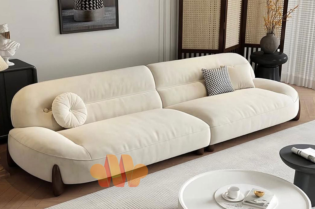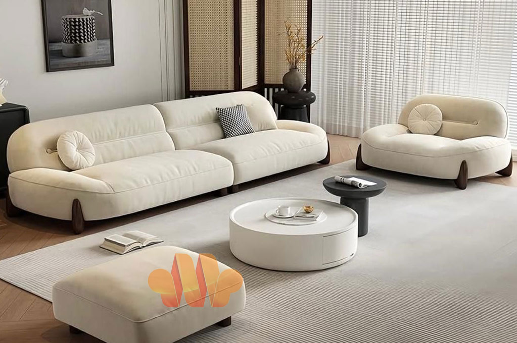ویژگیهای بارز مبل مارکو: 1- طراحی ارگونومیک و مدرن: خطوط منحنی و فرم یکپارچه نشیمن، هم از نظر بصری چشمنواز است و هم نشستن را برای کاربر بسیار راحت میکند. 2- پایههای چوبی کوتاه با طراحی خاص: پایههای تیرهرنگ چوبی در تضاد با رنگ روشن مبل قرار دارند و جلوهای خاص به فضا میدهند.