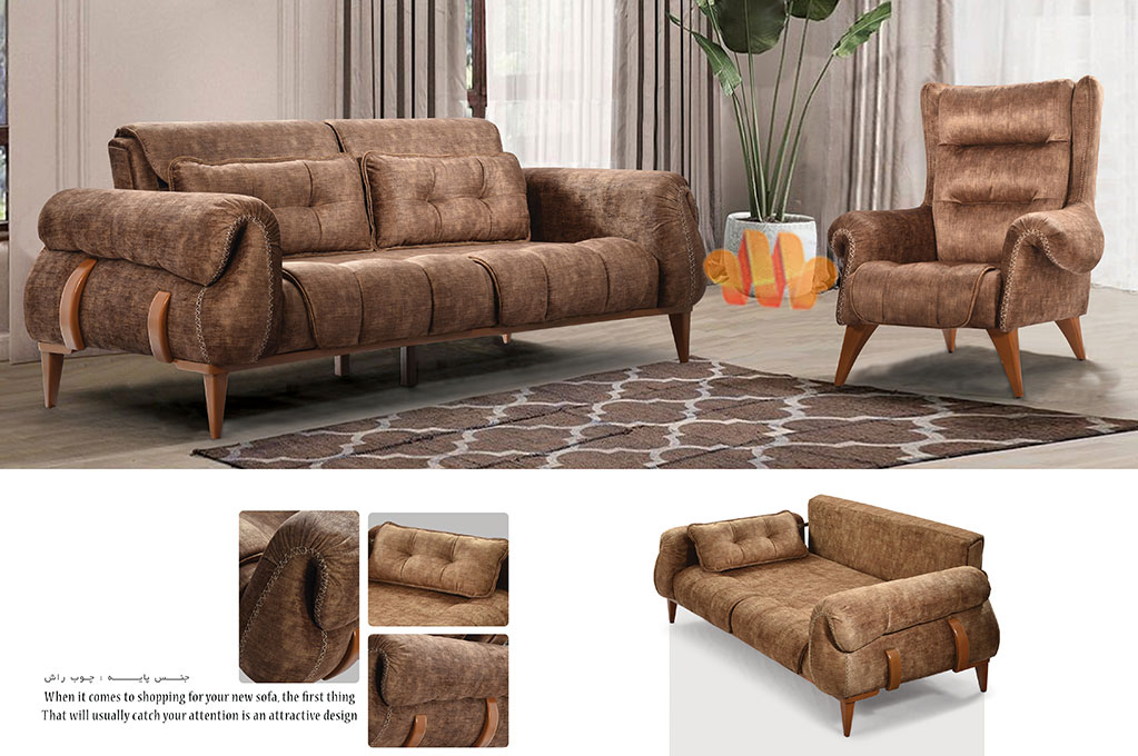 مبلمان آرامیس یکی از بروزترین مدل های مناسب جلوی تلویزیون می باشد. دسته های کاناپه ها و مبل های یک نفره بسیار راحت بوده و حس خوبی به شمل انتتقال می دهد. برای تولید پایه ها از چوب راش استفاده شده و برای نشیمن بهتر اسفنج 35 کیلویی استفاده شده است. همانطور که در عکس مدل آرامیس رویت می کنید. مبلمان راحتی با پارچه رنگ نسکافه ای متمایل به قهوه ای تولید شده است که شما می توانید با رنگ مورد علاقه تان سفارش خود را ثبت کنید.
